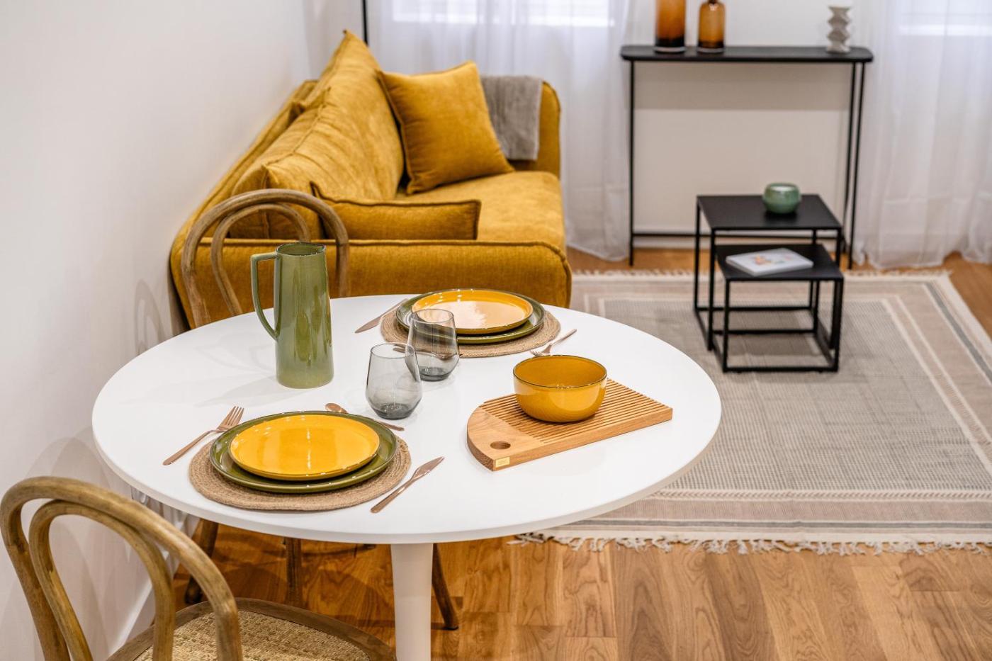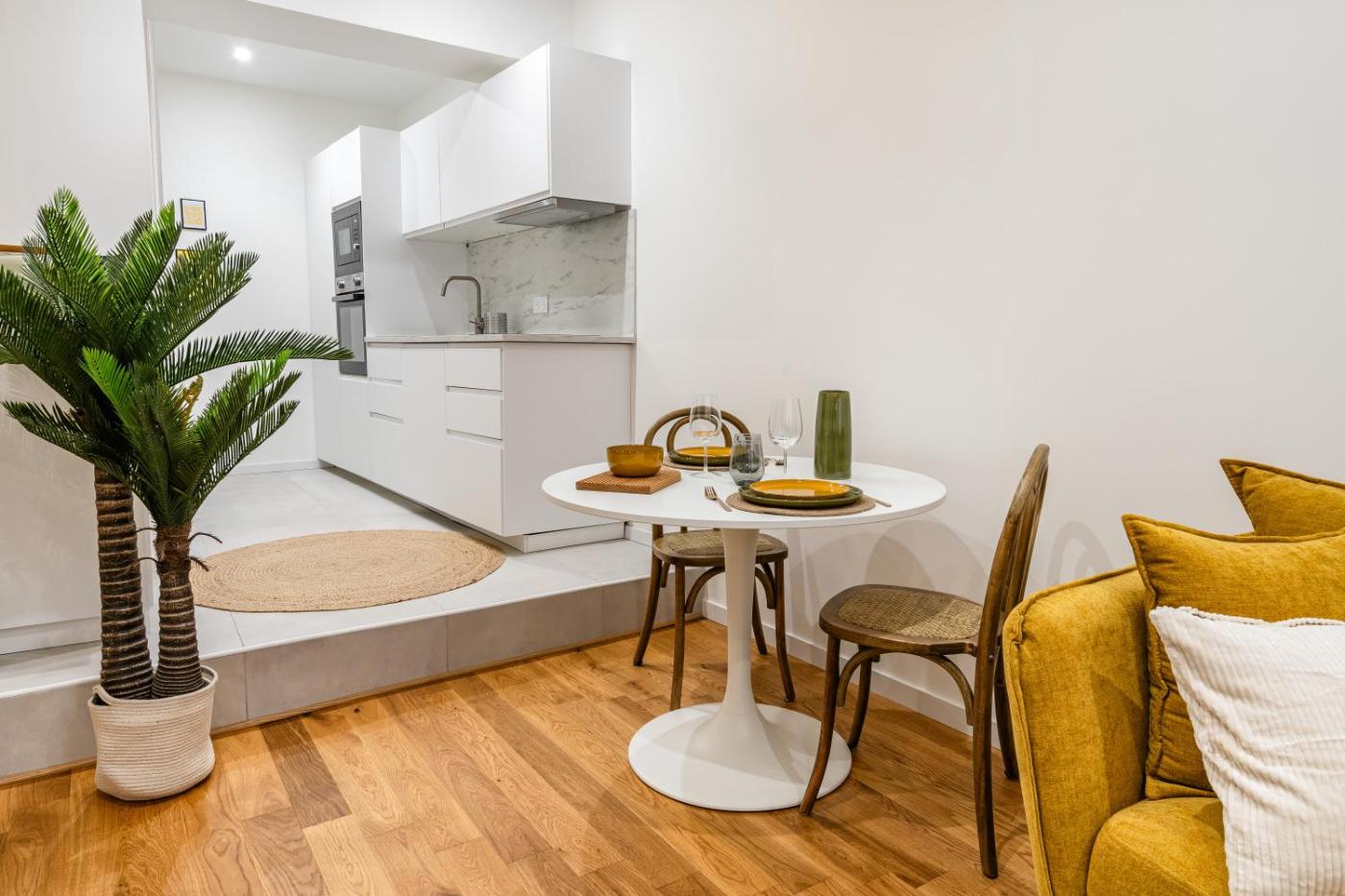 One-Bedroom Apartment. Guests can make meals in the kitchen that comes with a stovetop, a refrigerator, a dishwasher and kitchenware. This apartment is air-conditioned and features a seating area with a flat-screen TV, a washing machine, a coffee machine, a wardrobe, as well as a sofa. The unit offers 1 bed.