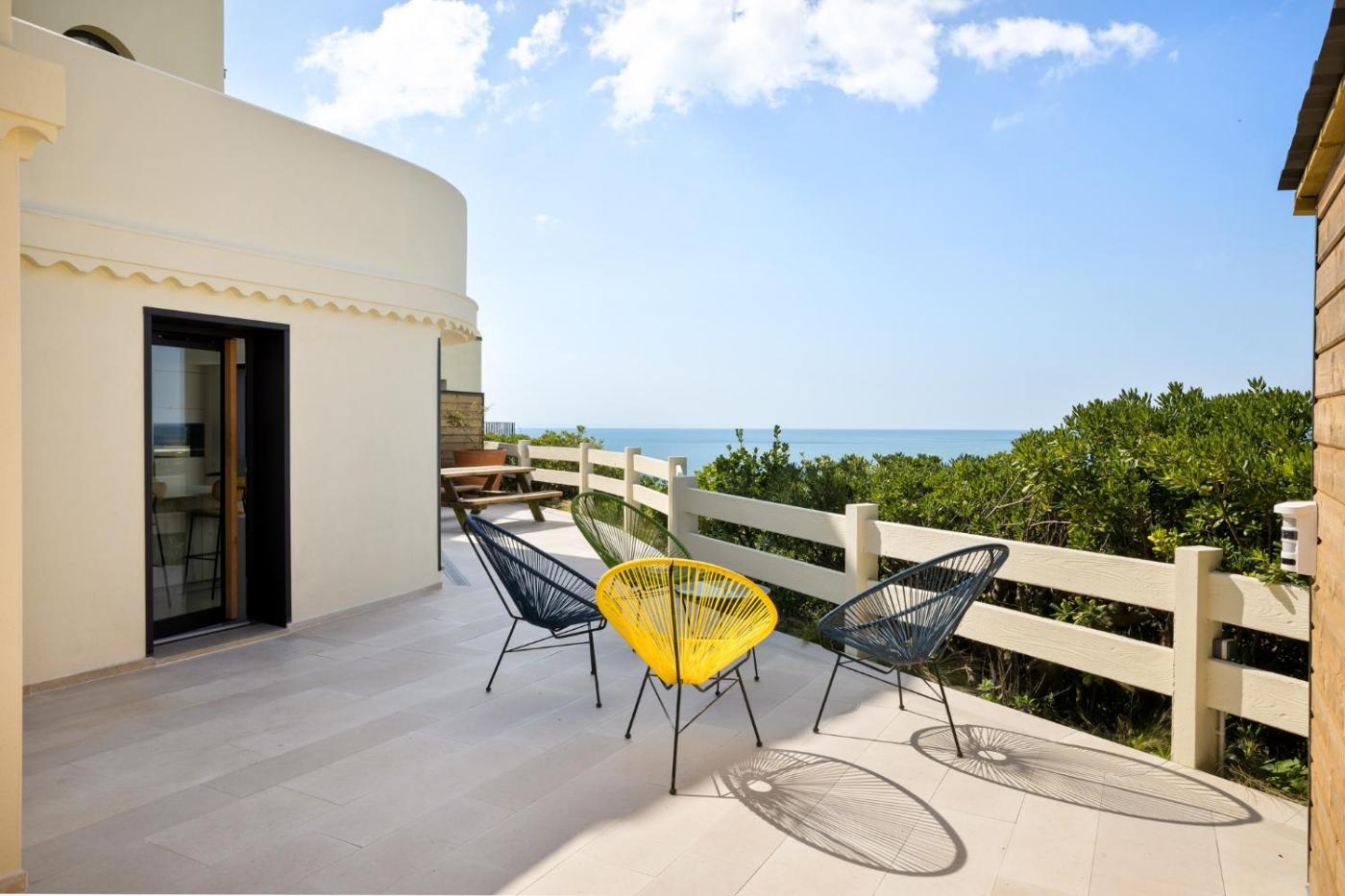 Deluxe One-Bedroom Apartment with Ocean View. Featuring a private entrance, this apartment consists of 1 living room, 1 separate bedroom and 1 bathroom with a shower and a hairdryer. Guests can make meals in the kitchen that is equipped with a stovetop, a refrigerator, a dishwasher and kitchenware. Boasting a terrace with sea views, this apartment also provides a washing machine and a flat-screen TV. The unit offers 2 beds.