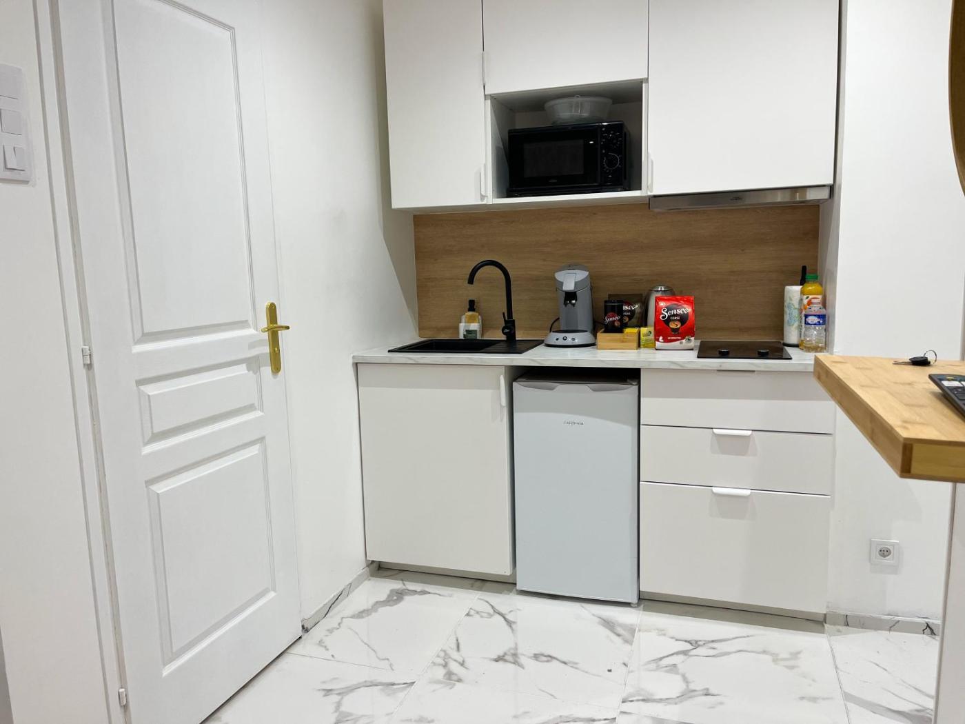 One-Bedroom Apartment. The well-fitted kitchen has a stovetop, a refrigerator, kitchenware and a microwave. This apartment features a tea and coffee maker, a seating area, flat-screen TV with streaming services, as well as chocolate for guests. The unit offers 1 bed.
