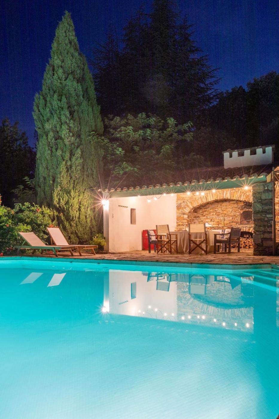 Villa. The pool with a view and fireplace are the standout features of this villa. This spacious villa comprises 1 living room, 4 separate bedrooms and 3 bathrooms with a bath and a shower. Guests will find a stovetop, a refrigerator, a dishwasher and kitchenware in the well-fitted kitchen. The villa also provides guests with a barbecue. The villa features a washing machine, a private entrance, a tea and coffee maker as well as a terrace with garden views. The unit offers 8 beds.