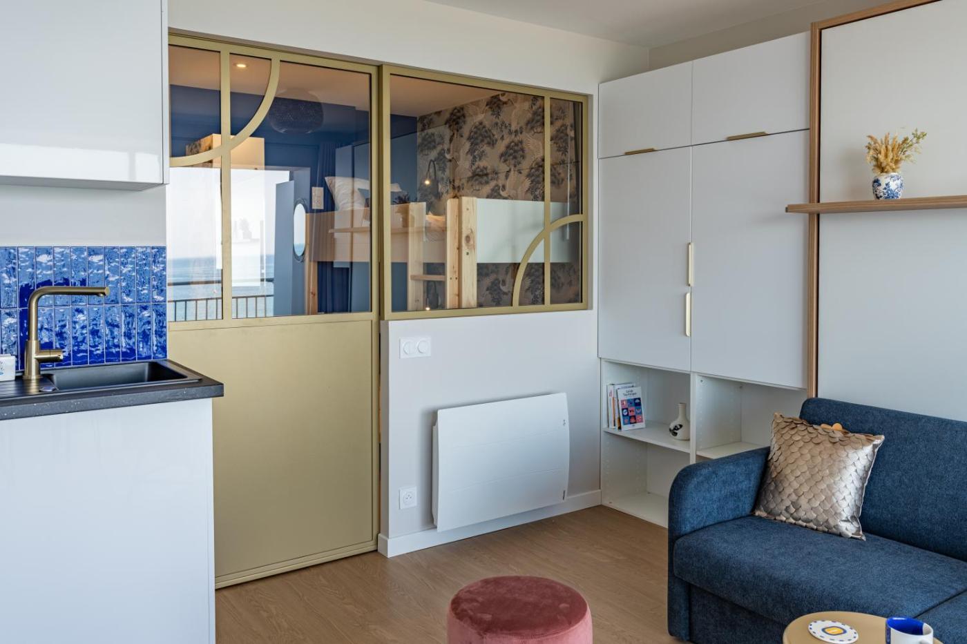 Studio Apartment with Sea View. Featuring a private entrance, this air-conditioned apartment is comprised of 1 living room, 1 separate bedroom and 1 bathroom with a shower and a hairdryer. The well-equipped kitchen features a stovetop, a refrigerator, kitchenware and a microwave. Boasting a balcony with sea views, this apartment also offers a tea and coffee maker and a flat-screen TV with streaming services. The unit offers 2 beds.
