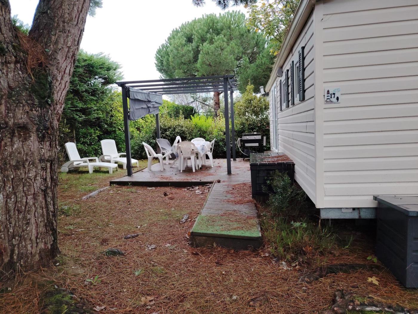 Mobile Home. This mobile home provides a private pool. Featuring 2 bedrooms, this mobile home offers 1 bathroom with a shower, a seating area and terraceyou can relax. This mobile home features a tea and coffee maker, a dining area, a flat-screen TV with satellite channels and an outdoor dining area. The unit has 3 beds.