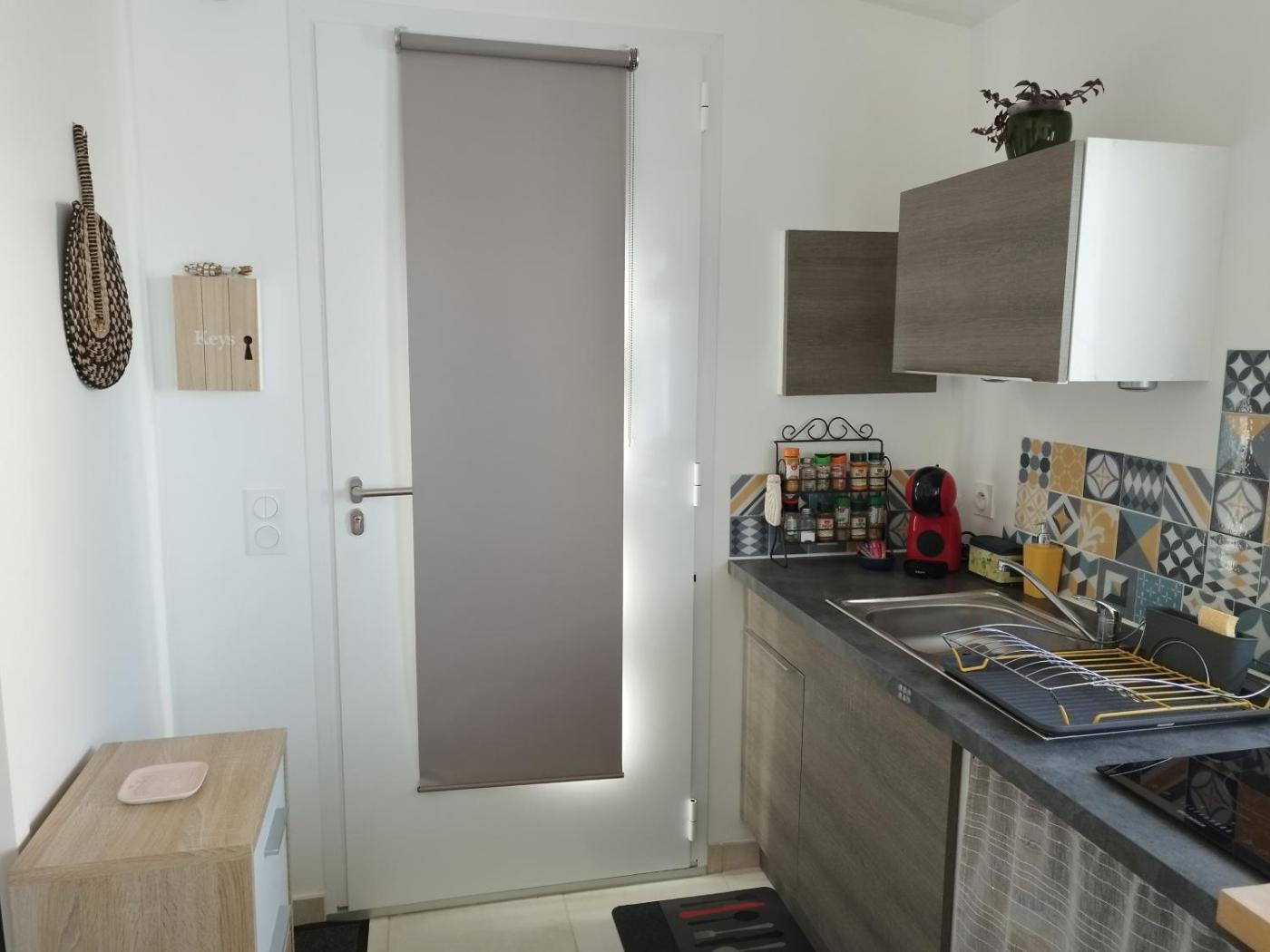 Studio Apartment. The well-equipped kitchenette has a stovetop, a refrigerator, kitchenware and an oven. The apartment features air conditioning, a private entrance, a terrace with garden views as well as a private bathroom boasting a shower. The unit has 1 bed.